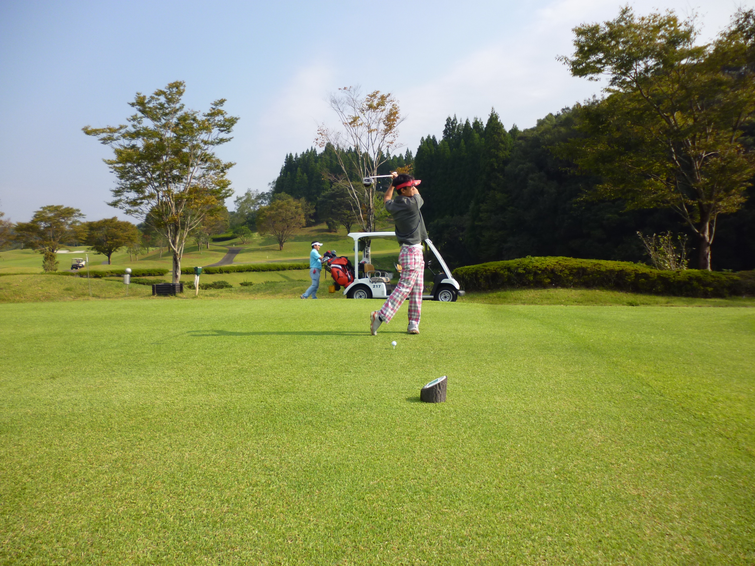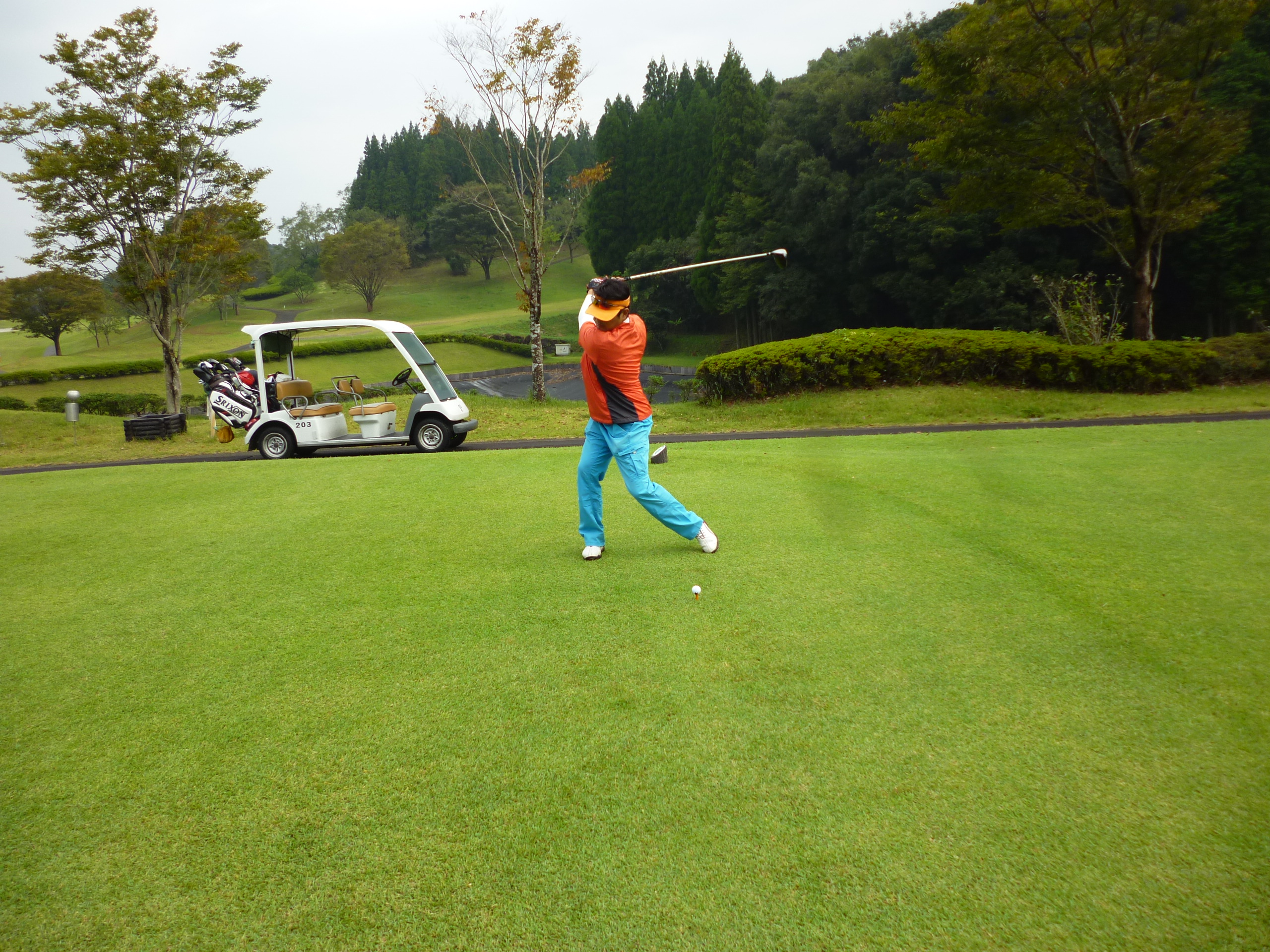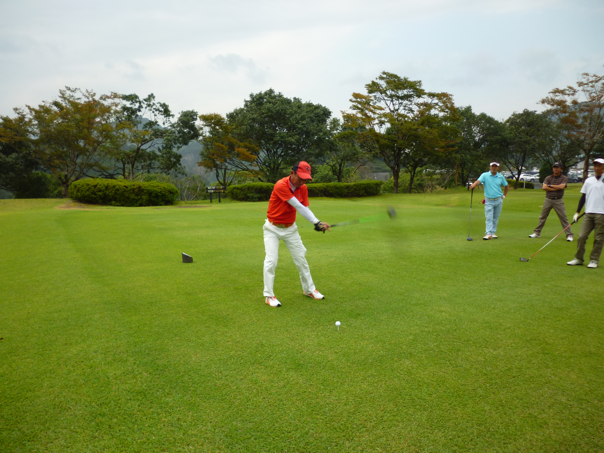 新幹線で1時間、みんな楽しみにしていたゴルフ旅行です。天気にも恵まれ絶好のゴルフ日和、最初からほろ酔いの方もちらほら見える中で祁答院ゴルフカントリークラブでプレースタート!