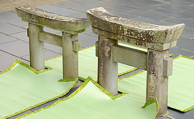 粟嶋神社の境内には、縦・横30センチの石造りの鳥居が三基あります。