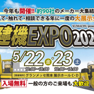当展示会は6回目となる熊本最大の建設機械の祭典であり、建設に関わるあらゆる重機、車両、小型機械はもちろん、家庭用工具や資材、熱中症対策品、家電、健康器具、貴金属等、多種多様な商品を展示販売しております。また、今回も飲食に...